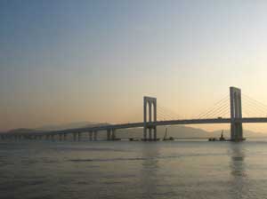 澳門特區(qū)政府于二○○二年八月初決定把設(shè)計及建造第三大橋的承攬工程判給由國家著名建橋企業(yè)組成的“中鐵———大橋聯(lián)合體”,造價為五億六千多萬元,大橋的設(shè)計及建造要求在28個月內(nèi)完成。由于工程進展順利,大橋提前兩個月竣工。