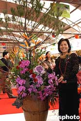 十一月二十八日,在福建漳州舉辦的第六屆海峽兩岸花卉博覽會(huì)上,臺灣中華花藝設(shè)計(jì)協(xié)會(huì)總會(huì)理事、著名插花表演藝術(shù)家陳好女士現(xiàn)場為觀眾插了一盆“龍鳳吉祥”的花藝盆景,博得觀眾的喝彩。作者:王東明