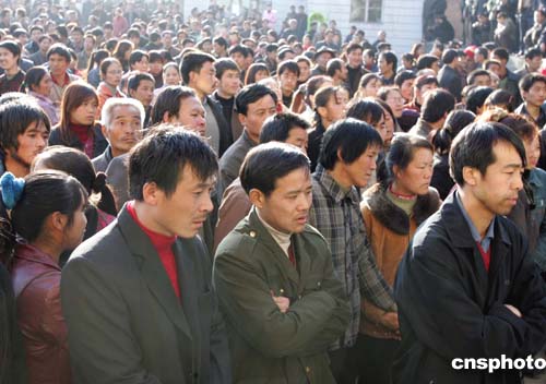 十一月二十九日下午,大批被困井下、下落不明礦工的親屬在發(fā)生瓦斯爆炸事故的陜西銅川礦務(wù)局陳家山煤礦外焦急等待親人的消息。作者:任晨鳴