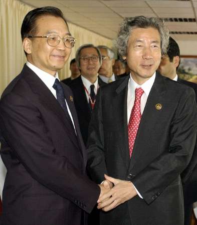 溫家寶說,中日是重要的鄰邦。中日邦交正常化三十二年來,兩國關(guān)系取得了很大的發(fā)展。發(fā)展睦鄰友好關(guān)系對兩國有利,對亞洲乃至世界都有利。