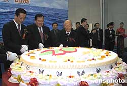 號稱中國開發(fā)區(qū)“領(lǐng)頭羊”的天津經(jīng)濟技術(shù)開發(fā)區(qū)迎來二十周歲生日。建區(qū)二十年成就展十二月一日在開發(fā)區(qū)開幕。當(dāng)年這里還是一片荒涼的鹽堿灘頭,如今已成長為中國環(huán)渤海地區(qū)最具魅力的經(jīng)濟區(qū)域。圖為開發(fā)區(qū)歷任行政首腦皮黔生、王述祖、葉迪生等在分切生日蛋糕。作者:柳俊武
