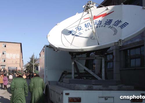 陜西銅川礦務(wù)局陳家山煤礦11月28日發(fā)生重大瓦斯爆炸事故后,中國各地媒體第一時(shí)間從四面八方蜂擁而至這個小山溝,各顯神通全方位報(bào)道事故的方方面面。圖為上海東方衛(wèi)視以每日兩萬元人民幣的租價(jià),從西安租用的衛(wèi)星通訊車。作者:任晨鳴
