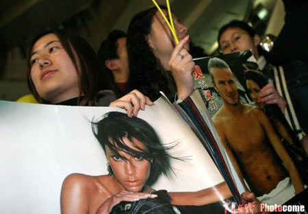 12月1日晚,懷胎7月的維多利亞作為精英模特大賽的評(píng)委再次抵達(dá)上海,機(jī)場(chǎng)有近百名歌迷迎候。圖片來(lái)源:中青在線