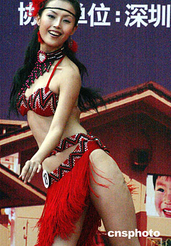 參加第十七屆世界模特小姐大賽中國賽區(qū)總決賽的選手,十月五日在深圳舉行大賽巡游時裝秀,圖為參賽佳麗表演熱情奔放的拉丁舞。中新社記者:錢興強