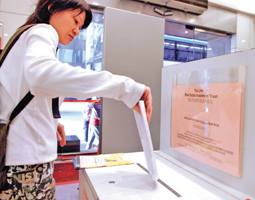 中新網(wǎng)12月9日電 據(jù)香港媒體報(bào)道,“領(lǐng)匯”房地產(chǎn)投資信托基金今日中午十二時(shí)截止認(rèn)購(gòu),有收票銀行提早在八時(shí)開(kāi)門收表。散戶今日十二時(shí)之前,仍有機(jī)會(huì)作最后沖刺,到銀行遞交認(rèn)購(gòu)表格。