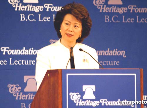 今年五十一歲的趙小蘭是美國第二十四任勞工部長,她是二00一年一月二十九日由美國參議院批準就任的,從而成為美國歷史上第一位躋身內閣的亞裔女部長。擔任勞工部長之前,趙小蘭曾擔任過美國交通部副部長和美國交通部航運署副署長等公職。