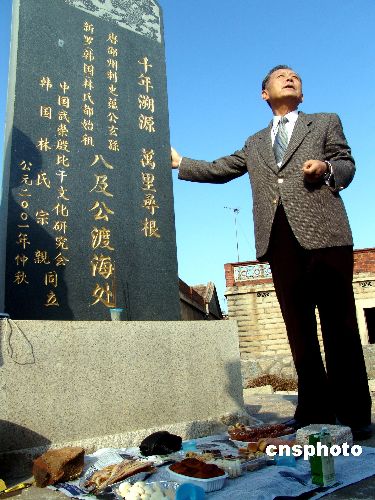 韓國憲政會政策委員會議長、林氏中央會會長林芳鉉先生千里迢迢帶團參加慶典,當天下午,韓國代表團一行還特地趕往惠安東嶺彭城拜謁“林八及渡海處”遺址,他們還帶來了韓文撰寫的詳細記載了唐朝林八及渡海赴韓及后裔來泉尋根歷史的碑文,準備銘刻在前年用中文所立“千年溯源萬里尋根”紀念碑的背面。林芳鉉介紹,韓國也有個地方叫彭城,唐朝時始祖林八及公從惠安彭城去往韓國,因為懷念故土,將那里命名為彭城。韓國有姓氏300多個,林姓位列前十,林氏后裔現有100多萬人。