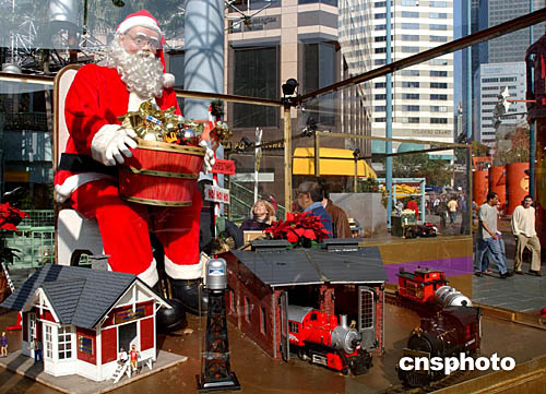 十二月十三日的美國洛杉磯街頭圣誕節(jié)氣氛漸濃,圣誕老人和懷舊微型火車裝飾再現(xiàn)過去的好時光。中新社記者:賈國榮