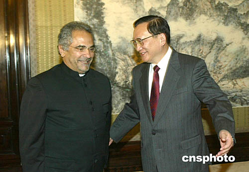 中國(guó)國(guó)務(wù)委員唐家璇十二月十四日在北京中南海會(huì)見(jiàn)來(lái)訪(fǎng)的東帝汶外交部長(zhǎng)奧爾塔。中新社記者:史利