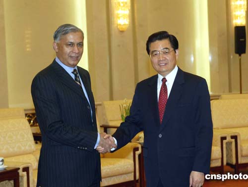 中新社北京十二月十六日電(記者齊彬)中國國家主席胡錦濤今天下午在會(huì)見巴基斯坦總理阿齊茲時(shí)表示,中方愿與巴方進(jìn)一步強(qiáng)化反恐合作,共同打擊地區(qū)“三股勢力”。