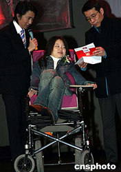 | 中國(guó)數(shù)字原創(chuàng)盛會(huì)“英特爾·二零零四年度中國(guó)數(shù)字盛典”頒獎(jiǎng)典禮活動(dòng)十二月十六日晚在北京舉行,各方代表、明星嘉賓和十五名Diggi數(shù)字原創(chuàng)大獎(jiǎng)獲得者與會(huì)。據(jù)悉,本次比賽開創(chuàng)五項(xiàng)之最,即最大規(guī)模、最廣泛影響力、最權(quán)威、最?yuàn)蕵、最高?jiǎng)金額,共收到參賽作品近一萬五千份。圖為用嘴創(chuàng)作FLASH作品、享譽(yù)網(wǎng)絡(luò)世界的閃客田甜(中)在頒獎(jiǎng)典禮上擔(dān)任開獎(jiǎng)和頒獎(jiǎng)嘉賓。中新社記者:盛佳鵬