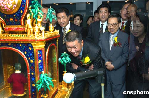 行政長(zhǎng)官何厚鏵看得特別仔細(xì),不時(shí)問工作人員這是什么國家制造的,是哪一年流入中國。在一座英國十八世紀(jì)出產(chǎn)的銅鍍金升降塔鐘前,何特首問身旁的故宮博物院的李副館長(zhǎng),這升降塔如果零件壞了怎么辦?李副館長(zhǎng)說,這都是手工制品很精細(xì),現(xiàn)在壞了英國也找不到做零件的師傅,所以很少開動(dòng)。何特首表示這些珍品要好好地保護(hù)。