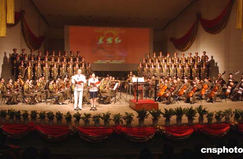 為紀念《東方紅》首演四十周年,新版“《東方紅》紀念音樂會”十二月十七日在北京上演,音樂會以大型音樂舞蹈史詩《東方紅》為藍本、以寬銀幕視聽交響合唱組曲形式重新打造,當年參加《東方紅》演出的著名演員王昆、李光羲、才旦卓瑪?shù)壤纤囆g(shù)家也重登舞臺重現(xiàn)昔日的《東方紅》風(fēng)采。作者:韓藝冰