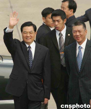 12月19日上午,中共中央總書記、國家主席、中央軍委主席胡錦濤首次乘專機(jī)抵達(dá)澳門,出席澳門回歸祖國五周年慶典活動(dòng)。作者:宗金柱