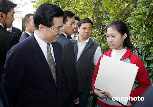 胡錦濤主席在參觀澳門著名景點大炮臺時,與在現(xiàn)場寫生的一位澳門兒童交談,并祝他長大后成為一名畫家。