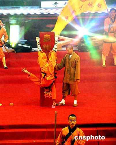 2004年12月19日上午,中國福建(泉州)南少林國際武術大賽,在泉州僑鄉(xiāng)體育館開幕。開幕式上南北少林同臺演武,精彩絕倫,其中泉州南少林寺武僧釋理亮表演的“一指禪”絕技更是讓現(xiàn)場嘉賓贊嘆不已。作者:石勇