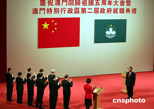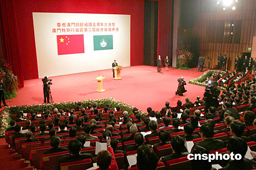 二十日,澳門(mén)隆重舉行慶祝澳門(mén)回歸祖國(guó)五周年大會(huì)暨澳門(mén)特別行政區(qū)第二屆政府就職典禮。作者:梁永強(qiáng)
