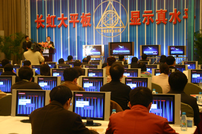 在此次發(fā)布會(huì)上,國(guó)家廣播電視產(chǎn)品監(jiān)督檢驗(yàn)檢測(cè)中心發(fā)布《長(zhǎng)虹平板電視綜合檢測(cè)報(bào)告》指出,長(zhǎng)虹平板電視在清晰度、亮度、色度、對(duì)比度等綜合性能指標(biāo)位列行業(yè)前茅。這表明,長(zhǎng)虹“平板顯像金三角”所擁有的專有技術(shù)代表著平板顯像技術(shù)的發(fā)展趨勢(shì)。