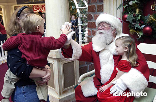 當(dāng)?shù)貢r(shí)間十二月二十四日圣誕節(jié)前夕,硅谷最重要的城市圣荷西的圣誕老人在購(gòu)物中心關(guān)門(mén)前的最后一分鐘還在向孩子們祝賀圣誕。作者:陳鋼