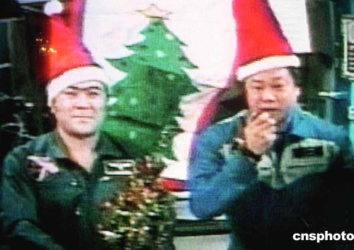 據(jù)十二月二十五日美國CNN報(bào)道,正在國際空間站的歷史上第一位美籍華裔站長焦立中(右),與俄羅斯宇航員沙里科夫共同從太空向地球人說,我們祝你圣誕快樂,新年愉快。(電視畫面)作者:賈國榮