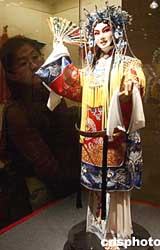 十二月二十六日,北京民間藝術(shù)展正在中華世紀(jì)壇舉行,風(fēng)箏、泥塑、面塑、毛猴、剪紙、蛋雕、京劇臉譜等二十多個(gè)藝術(shù)門類的二百八十件民間工藝品與觀眾見(jiàn)面。作者:韓藝冰