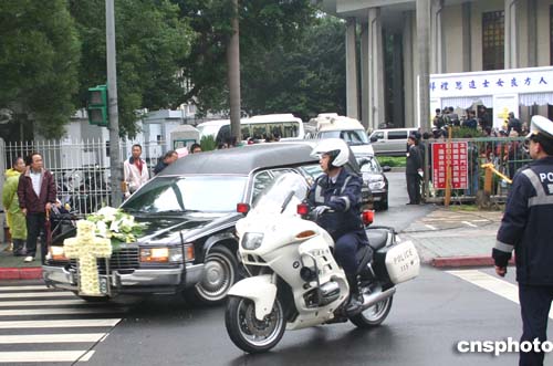 裝有蔣方良遺體的棺木,在其家屬護(hù)送下正抬出介壽堂,送上靈車,準(zhǔn)備到基隆火化。作者:黃少華
