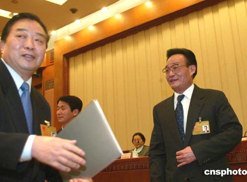 中新社北京十二月二十九日電(記者齊彬)第二任澳門特別行政區(qū)基本法委員會(huì)組成人員今天確定,喬嘵陽(yáng)和李成俊續(xù)任委員會(huì)主任和副主任,全國(guó)人大常委會(huì)委員長(zhǎng)吳邦國(guó)向他們和另外八位委員頒發(fā)了任命書。