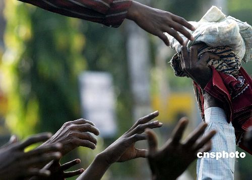 12月26日由印尼強(qiáng)震引發(fā)的猛烈海嘯,給印度、斯里蘭卡、泰國(guó)、印度尼西亞、馬爾代夫、馬來(lái)西亞等國(guó)家?guī)?lái)嚴(yán)重災(zāi)難。各受災(zāi)國(guó)的災(zāi)后救援工作已經(jīng)全面展開(kāi),數(shù)百萬(wàn)災(zāi)民急需幫助。圖為在印度災(zāi)區(qū),災(zāi)民在領(lǐng)取少得可憐的救濟(jì)物資。作者:Ic/cnsphoto