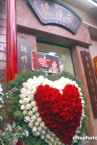 安放梅艷芳靈位的敬親閣外歌迷致送的花牌。作者:鄧慶樂(lè)