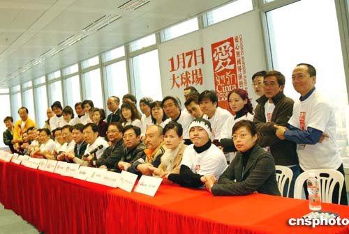 由香港演藝界發(fā)起于1月7日舉行的《愛心無國界》籌款表演,定于香港政府大球場舉行,1月1日,演藝界及多個團體聯(lián)合在香港國際金融中心舉行發(fā)布會,一眾出席嘉賓手拉手以示賑災決心。作者:洪少葵