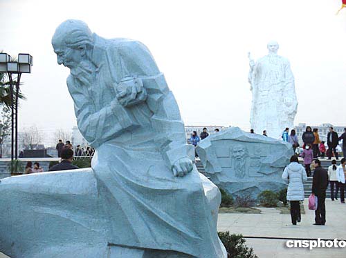 1月1日,值此中國畫宗師齊白石誕辰141周年紀(jì)念日,湘潭市民紛紛前往白石公園瞻仰其雕像,緬懷一代藝術(shù)大師。公園內(nèi)5座淺藍(lán)雕塑將白石老人從最初的放牛娃到刻苦學(xué)藝并最終獲得國際和平獎的人生經(jīng)歷勾勒出來。作者:劉雙雙