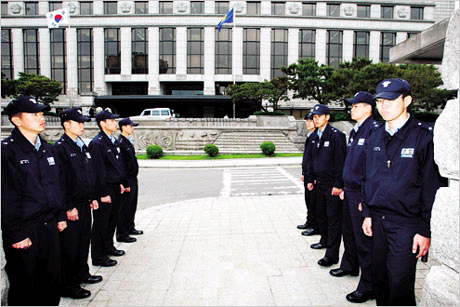 在宣布判決前一天的13日,警方在憲法裁判所周圍部署了2個中隊的警察等共200多人,針對可能發(fā)生的外部人員進入、非法集會以及示威,加強了巡邏以及警備活動。警方計劃,如果發(fā)生緊急事態(tài),就投入部署在政府綜合大廈和美國大使館的兵力。