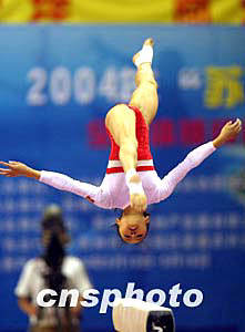 五月十七日晚,全國(guó)體操錦標(biāo)賽暨奧運(yùn)會(huì)預(yù)選賽在江蘇蘇州完成所有項(xiàng)目的比賽,安徽選手李婭在平衡木決賽中戰(zhàn)勝對(duì)手獲得冠軍。圖為李婭在平衡木比賽中。中新社記者:盛佳鵬