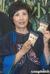 著名藝人汪明荃5月19日在香港出席《樂(lè)施會(huì)中國(guó)發(fā)展基金2004》記者會(huì),「樂(lè)施大使」汪明荃身穿布依族傳統(tǒng)繡花服飾,手持親筆簽名的「樂(lè)施米」,呼吁各界支持「樂(lè)施米」籌款活動(dòng)。作者:鄧慶樂(lè)