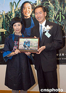 著名藝人汪明荃5月19日在香港出席《樂(lè)施會(huì)中國(guó)發(fā)展基金2004》記者會(huì),「樂(lè)施大使」汪明荃月前遠(yuǎn)赴貴州省晴隆縣,親身體會(huì)當(dāng)?shù)剞r(nóng)民生活,樂(lè)施會(huì)副主席陳智思向「樂(lè)施大使」汪明荃送上紀(jì)念照片。作者:鄧慶樂(lè)