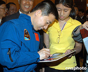 美東時(shí)間五月十九日晚,中國(guó)常駐聯(lián)合國(guó)代表團(tuán)舉行招待會(huì),歡迎中國(guó)載人航天工程代表團(tuán)來訪。中國(guó)首飛航天員楊利偉受到當(dāng)?shù)貎S胞熱烈歡迎。中國(guó)載人航天工程代表團(tuán)是為了把“神舟”五號(hào)航天飛船上攜載的聯(lián)合國(guó)旗幟移交給聯(lián)合國(guó)而訪問紐約的。作者:陳建