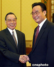 中新社北京五月二十一日電 (記者 朱大強)中國全國人大常委會委員長吳邦國和全國政協(xié)主席賈慶林今天在此間分別會見了越南總理潘文凱。他們指出,雙方要共同珍惜和精心維護友好關系,妥善處理存在的問題。
