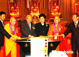 香港已經(jīng)回歸祖國(guó)七年,而佛誕成為香港特區(qū)公眾假期也有六年時(shí)間。為了慶祝佛誕,香港佛教聯(lián)合會(huì)在國(guó)務(wù)院、國(guó)家宗教局、中國(guó)佛教協(xié)會(huì)及其他內(nèi)地單位的鼎力支持及協(xié)助下,特別迎請(qǐng)佛指舍利及有關(guān)國(guó)寶圣物來(lái)港,而中央出于對(duì)香港同胞的關(guān)懷和愛(ài)護(hù),批準(zhǔn)國(guó)寶圣物來(lái)港展出,并安排由全國(guó)政協(xié)副主席劉延?xùn)|女士親自率領(lǐng)代表團(tuán)蒞港。我謹(jǐn)藉這個(gè)機(jī)會(huì),向中央、劉延?xùn)|副主席以及其他有關(guān)的單位及人士致以熱烈的謝意。