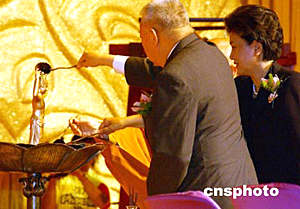 中新網(wǎng)5月26日電 “香港佛教暨各界迎請(qǐng)佛指舍利瞻禮祈福大會(huì)”開(kāi)幕儀式今天上午在香港會(huì)議展覽中心舉行,香港特區(qū)行政長(zhǎng)官董建華致開(kāi)幕詞時(shí)感謝中央政府特別批準(zhǔn)把陜西法門(mén)寺珍藏的佛指舍利及二十件一級(jí)國(guó)寶文物安排來(lái)港展出,認(rèn)為這是佛教徒以至全港市民的福氣。