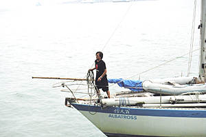 畢業(yè)于美國(guó)德州大學(xué)的翁以煊先生是一位計(jì)算機(jī)專家,自1998年開始,他只身駕駛被命名為“信天翁”的單桅帆船開始環(huán)球航海之旅,至今已走過了三大洋、四大洲,行程三萬多海哩,也是單人環(huán)球航海穿越南大洋五大角的第一位華人。