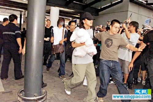 F3在大約6時抵達,而朱孝天有工作在身稍后才到港,F場所見仔仔帶上口罩,帶病出席盛會。五百多Fans一見偶像立即蜂擁而上,保安由六人增至60人,Fans爭相上前握手和送花,場面一片混亂,更弄破一名攝影記者的鏡頭。期間吳建豪在人海中被人拍中頭部,使他十分愕然,在旁的暴龍加以安慰。F3離開機場后,Fans立即變成追蹤隊,在公路上追車時險象環(huán)生。此外,蔡依林昨晚在百忙中抽空到Dior掃貸,盡顯購物狂本色。
