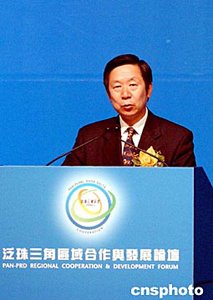 “泛珠三角區(qū)域合作與發(fā)展論壇”6月1日在香港揭幕,圖為國(guó)務(wù)院港澳辦副主任陳佐洱在討論上演講。作者:洪少葵