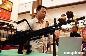 六月在北京民族文化宮舉辦的首屆中國民間工藝品博覽會(huì)上,由江蘇省南通木雕藝術(shù)家朱宇用黑檀木精雕細(xì)刻制作的仿真木雕藝術(shù)作品《寧靜》,成為最吸引觀眾的藝術(shù)品之一。這個(gè)倡導(dǎo)世界和平的作品以輕機(jī)槍為腳本,其做工之精細(xì)堪稱一絕。中新社記者:鄒憲