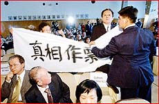中新網(wǎng)6月6日電 呂秀蓮5日在臺“友邦”國危地馬拉一大學(xué)時,突然遭到一名臺灣當(dāng)局前“駐危地馬拉武官”手舉“真相、作票、恥”白布條的抗議,指“沒有真相、就沒有‘副總統(tǒng)’”,在一陣?yán)吨,這名叫桂務(wù)勇的前武官遭到呂秀蓮隨扈架出會場。