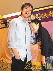 在招待會(huì)上,他又與FANS重演劇中與女角劉亦菲含情脈脈一幕,女FANS面對(duì)偶像已不能自持,還要跟他對(duì)望,最終小志把她擁在懷中,令該FANS喜不自禁。