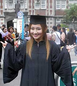 中新網(wǎng)6月14日電 據(jù)新加坡聯(lián)合早報(bào)報(bào)道,臺灣當(dāng)紅組合S·H·E的Selina任家萱從臺灣師范大學(xué)“公民教育與活動領(lǐng)導(dǎo)學(xué)系”順利畢業(yè),她在畢業(yè)典禮上還率領(lǐng)全體同學(xué)一起唱校歌。