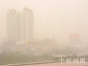 六月十四日傍晚,北京遭遇大風(fēng)揚(yáng)塵天氣,夕陽在烏云、沙塵作用下,呈現(xiàn)出少見的天象。中新社記者:武仲林
