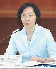為紀(jì)念CEPA簽署一周年,及進(jìn)一步推動(dòng)香港與內(nèi)地的經(jīng)濟(jì)合作,民建聯(lián)十四日在會(huì)展中心舉行“拓展商機(jī) 互利雙贏”研討會(huì),中華人民共和國商務(wù)部臺(tái)港澳司陳星副司長(zhǎng)講述實(shí)施一年來所取得的成效和今后擴(kuò)展的措施。中新社記者:趙振清