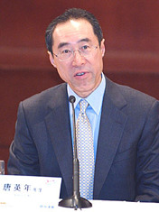 香港財(cái)政司司長(zhǎng)唐英年十四日在香港出席CEPA實(shí)施一周年研討會(huì),回顧一年來所取得的成效和今后擴(kuò)展的措施。中新社記者:趙振清