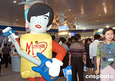 APEC在電子商務領域舉辦的首次重大經貿活動“APEC電子商務博覽會”,六月十五日至十九日在中國海濱城市煙臺舉行,以臺灣歌手周杰倫為形象的充氣人出現(xiàn)在本次商覽會主展覽上。中新社記者:張宇